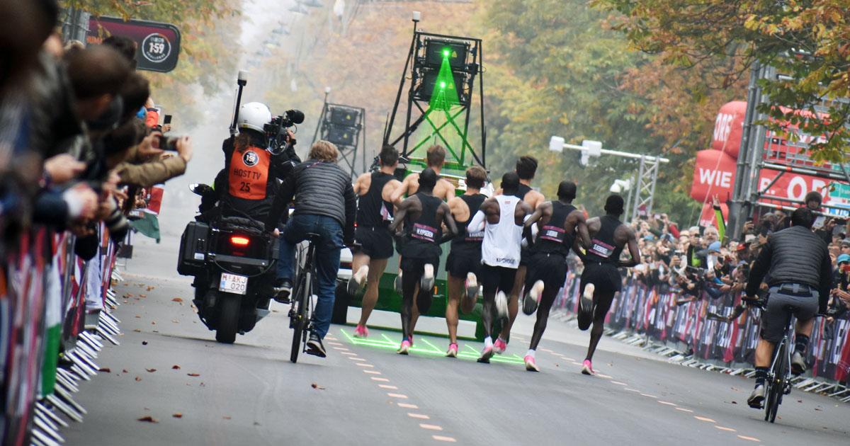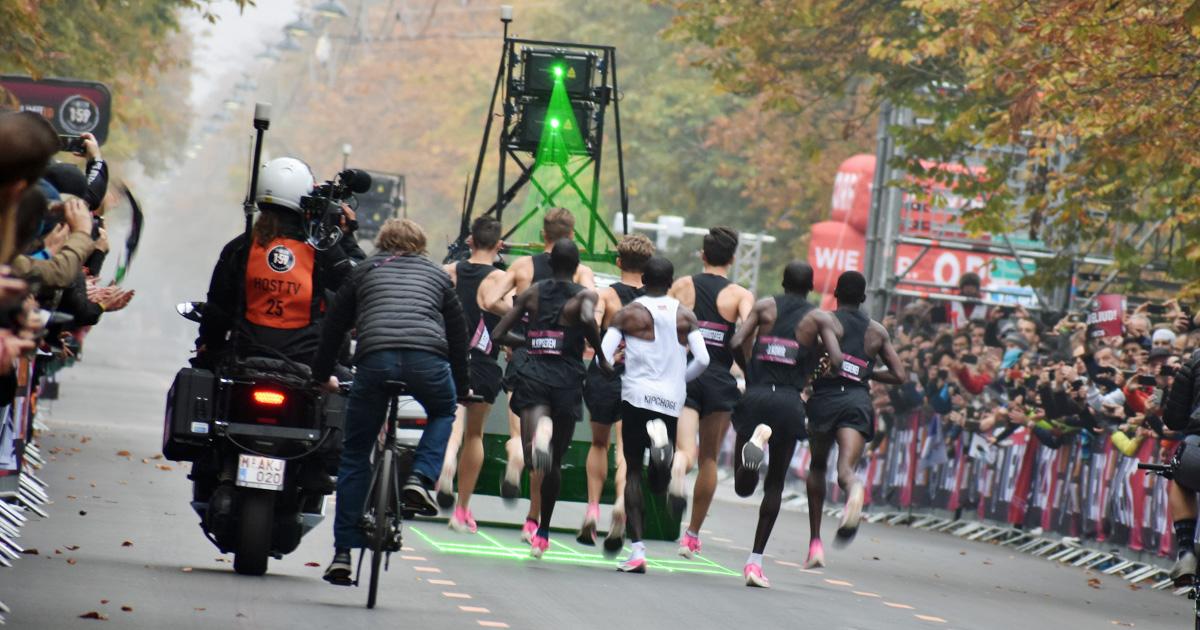 Die INEOS 1:59 Challenge hat am 12. Oktober 2019 auf der Prater Hauptallee in Wien statt gefunden. Eliud Kipchoge ist an diesem ehrwürdigen Tag an besagtem Ort die Marathon-Distanz von 42,195 Kilometer in einer Zeit von 1:59:40,2 Stunden gelaufen. Das entspricht einem Tempo (Pace) von 2:50 Minuten / Kilometer, beziehungsweise 21,18 km/h. Dafür hat man sogar temporär die Wende ums Lusthaus bautechnisch verändert. Somit ist die sogenannte Kipchoge-Kurve entstanden, um die bestmögliche Pace auch in der Kurve halten zu können. Diese baulichen Maßnahmen wurden nach der INEOS 1:59 Challenge wieder zurück gebaut. Sehen Sie hier Bilder der originalen INEOS 1:59 Challenge vom 12. Oktober 2019: