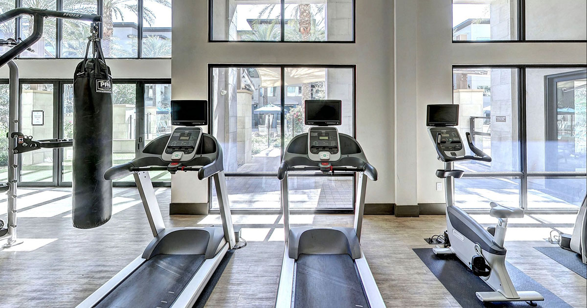 Abbildung: viele Fitnesscenter setzen speziell im Cardiobereich auf helle lichtdurchflutete Glasfronten